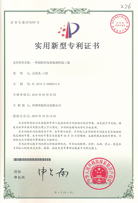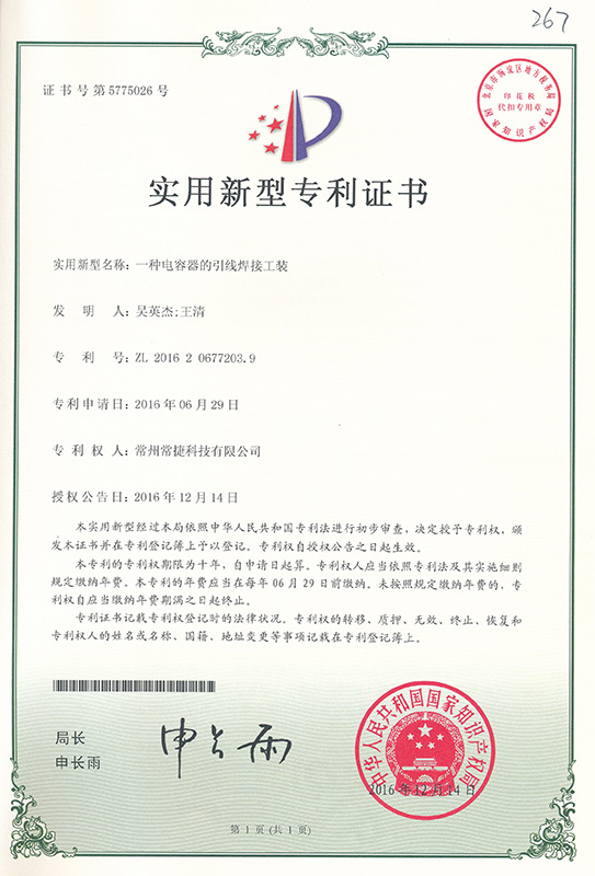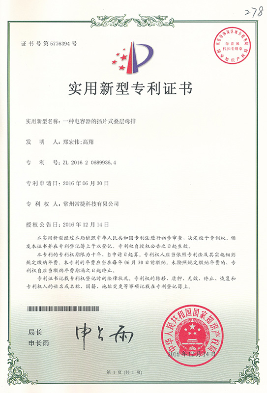 | 高新技术企业 | 工程技术研究中心 | 江苏省新能源金属化薄膜电容器工程技术研究中心 | 常州市名牌产品 |