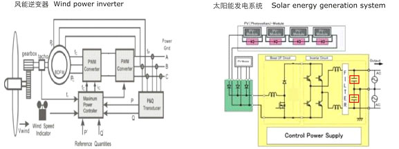 逆变电源、UPS 电源、大功率开关电源等输入/输出侧滤波;