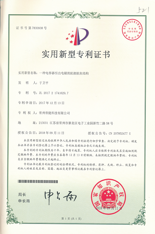 | 高新技术企业 | 工程技术研究中心 | 江苏省新能源金属化薄膜电容器工程技术研究中心 | 常州市名牌产品 |